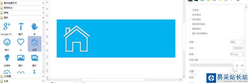 4、第四步,在“圖標”里找到“主頁”,拖曳一個到矩形上,如下圖所示:
