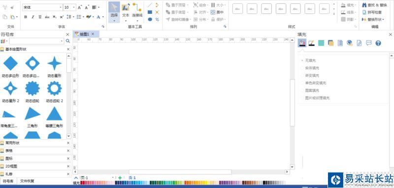 2、第二步,創建空白的畫布,查看左側常用形狀、表格、圖標、2D框圖等,如下圖所示: