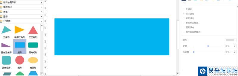 3、第三步,在“2D框圖”找到矩形,拖曳一個到畫布上,如下圖所示:
