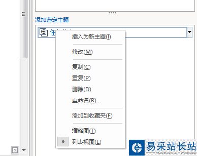 3、右擊“導(dǎo)圖部件”,選擇“添加選定主題為新的導(dǎo)圖部件”,選中的主題會自動添加在下方列表中。或者,可直接選中合適的文件夾,單擊列表上方的“添加選定主題”即可。