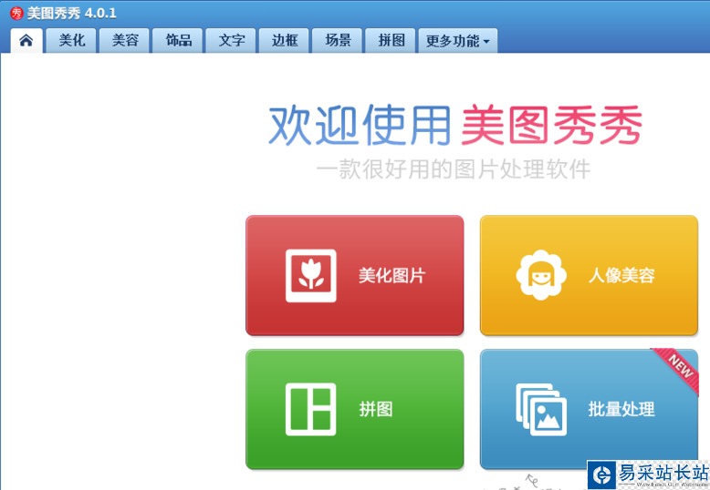 1、打開美圖秀秀這款軟件,進入美圖秀秀的操作界面,如圖所示: