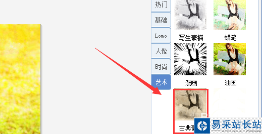 6、點擊藝術選項,在其內找到古典素描選項,如圖所示: