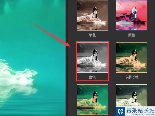 7、點擊去色選項,我們的圖片自動添加該效果,最后的圖片效果如圖所示: