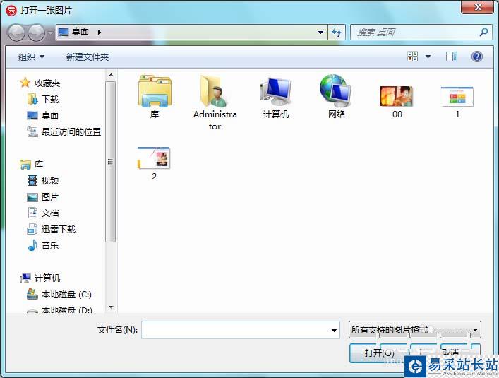 3、點擊打開選項后,彈出打開一張圖片對話框,如圖所示: