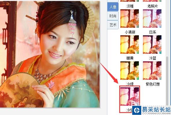 7、點擊冷紫選項,我們的圖片自動添加該效果,最后的圖片效果如圖所示: