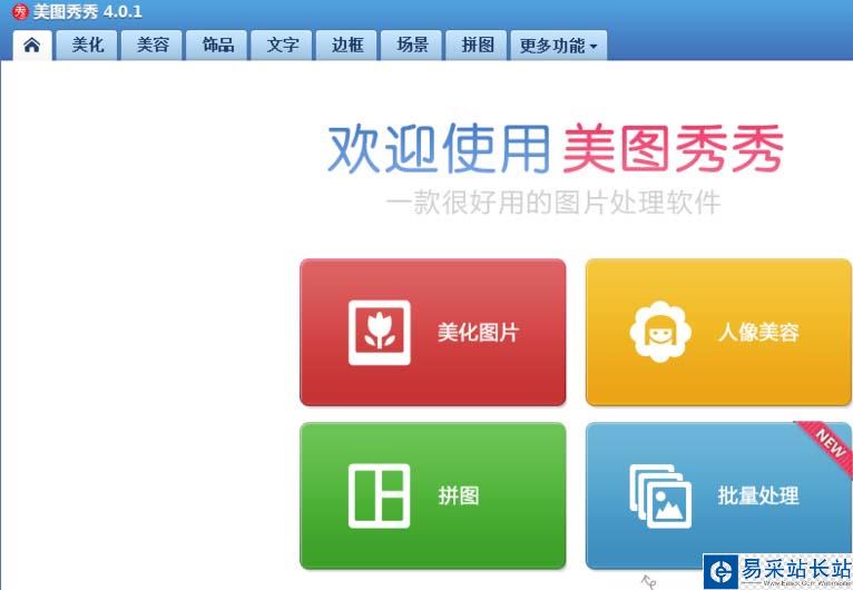 1、打開美圖秀秀這款軟件,進入美圖秀秀的操作界面,如圖所示: