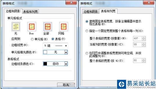 8、單擊“表格屬性”圖標(biāo),在打開的“表格格式”窗口中,你可以編輯表格屬性,包括邊框、陰影、表格和列寬。