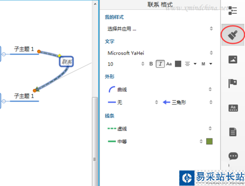 2、在視圖中可以修改聯系線的外形、顏色、樣式及聯系描述文字的字體,大小,顏色等。