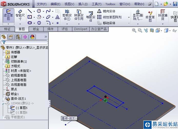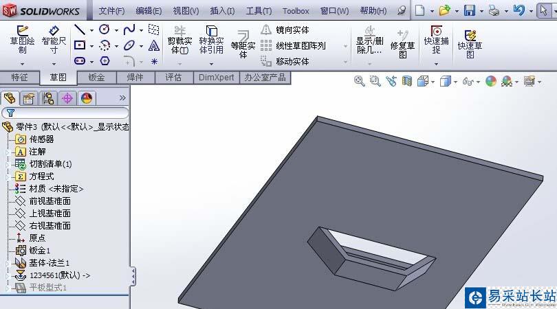 11、將剛剛創建的”命名為123456”成形工具直接拖進鈑金件上,點擊確認,后序進行尺寸位置標注。