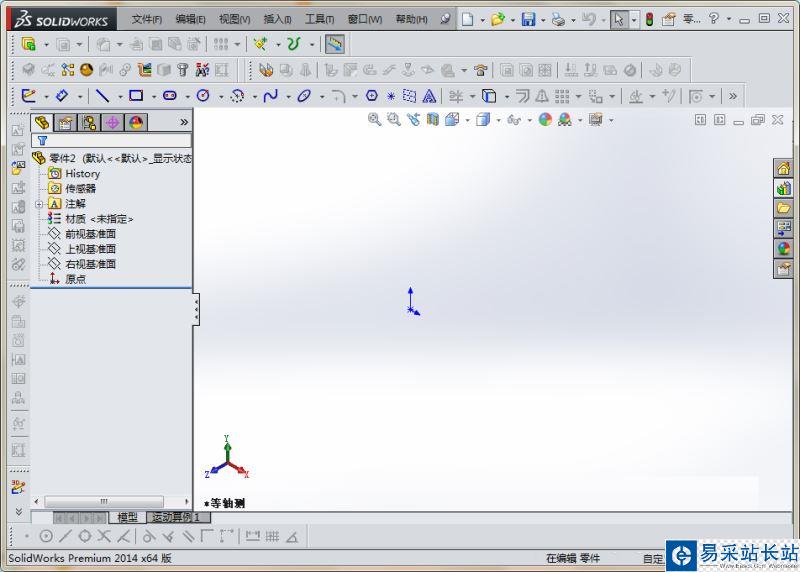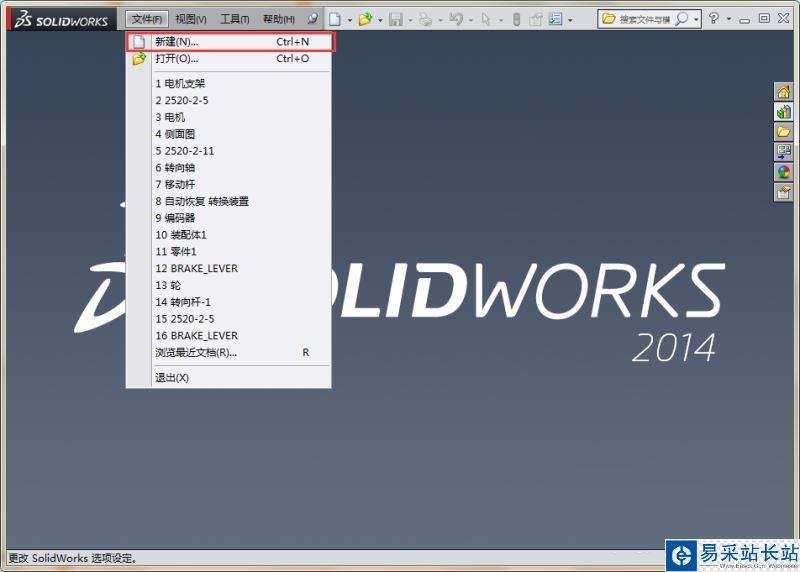 1、打開solidworks軟件,我使用的2014版本的并且對界面配置的又不太好;