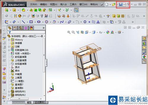 5、當我們的文件編輯完成后,單擊保存圖標保存一下,我們的一個簡單的零件就建立完成了。