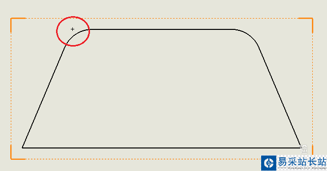 3、同理,另外一個圓角的虛擬交點也可以通過該方法做出來,然后選擇該兩點標注即可。該方法在零件的草圖繪制和工程圖的標注都是適用的。