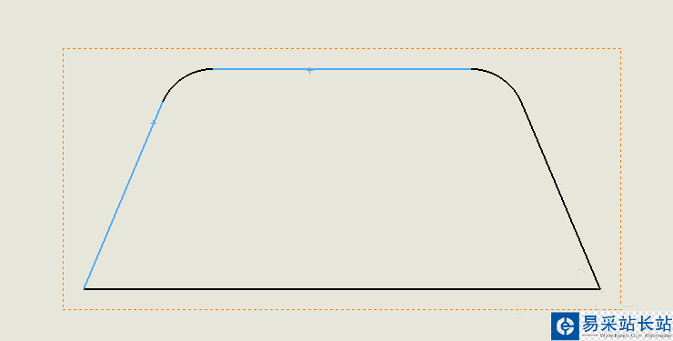 1、在繪制好圖形后,按住鍵盤Ctrl鍵選擇圓角旁邊的兩條線段,如下圖所示