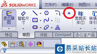 2、選擇好這兩條線段后,點擊草圖工具欄的點命令,虛擬交點就出現了