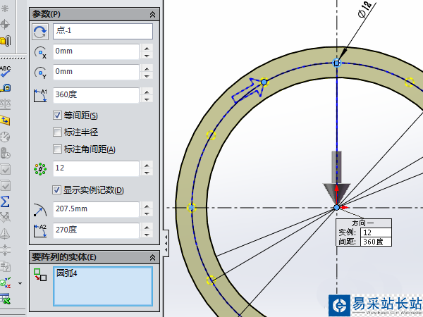 SolidWorks怎么按照一條曲線方向陣列圖形?