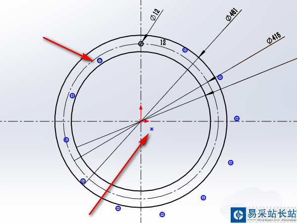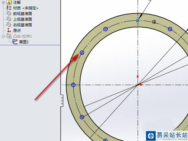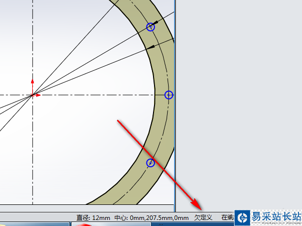 3、陣列完后發現草圖中的其它小圓變成了藍色,說明草圖變成未完全定義了。