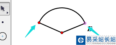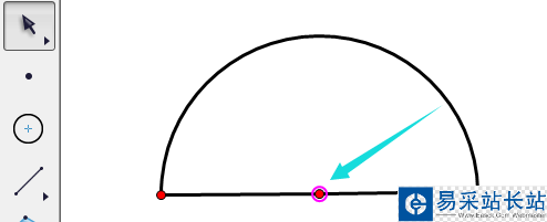 4、接著我們點擊中間的紅點,即是圓心,我們調整位置,將三個點位于同一直線,這時候半圓就成功了。(在調整直線的時候可以按著shift鍵,這樣可以保證是直線。)
