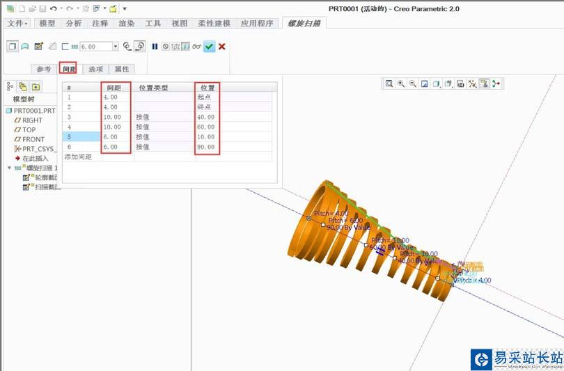 10、根據(jù)特殊的需要,可以設(shè)置變化式的螺距,這種操作方式比proe方便易用了很多。