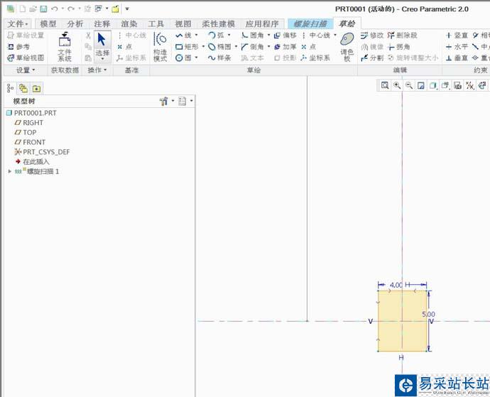 7、畫個(gè)封閉的矩形,其它圓形,方形,異形的截面都可以,只要是封閉的就行。當(dāng)然也是在螺旋中心線的一側(cè),不能相交,可以不在參考線上約束。
