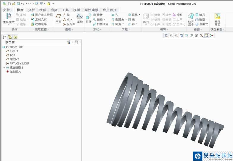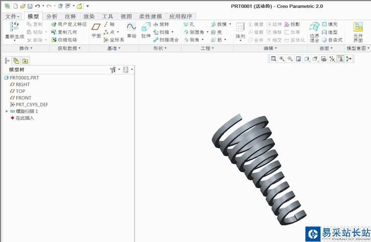 Creo的入門階段中,很多初學(xué)者都覺得彈簧比較難畫,甚至有些已經(jīng)用了不少時(shí)間的,幾乎還沒用過這個(gè)功能,下面小編以Creo2.0軟件為例,把自己的經(jīng)驗(yàn)來分享一下。