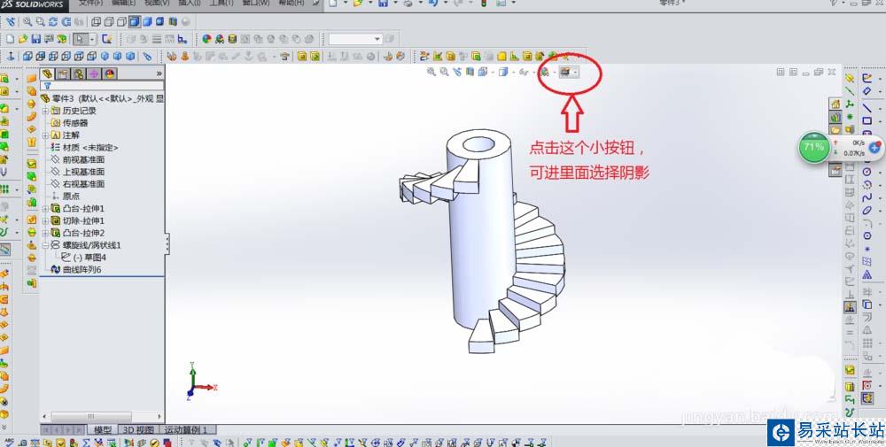 3、點擊“視圖”-“顯示”-“在上色模式下加陰影”,即可給零件添加陰影,如下圖