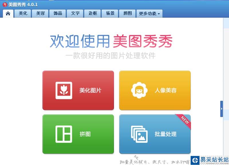 1、打開美圖秀秀軟件,進入美圖秀秀圖片處理軟件。