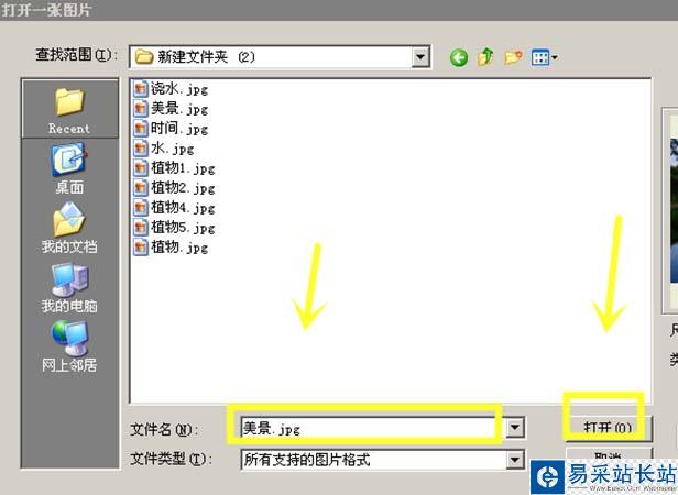 3、在對話框中,選擇照片打開途徑,選擇照片名稱,點擊打開。