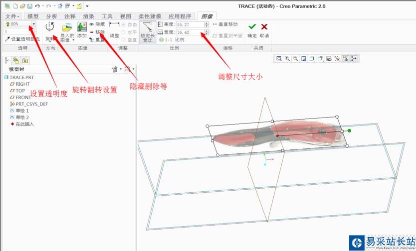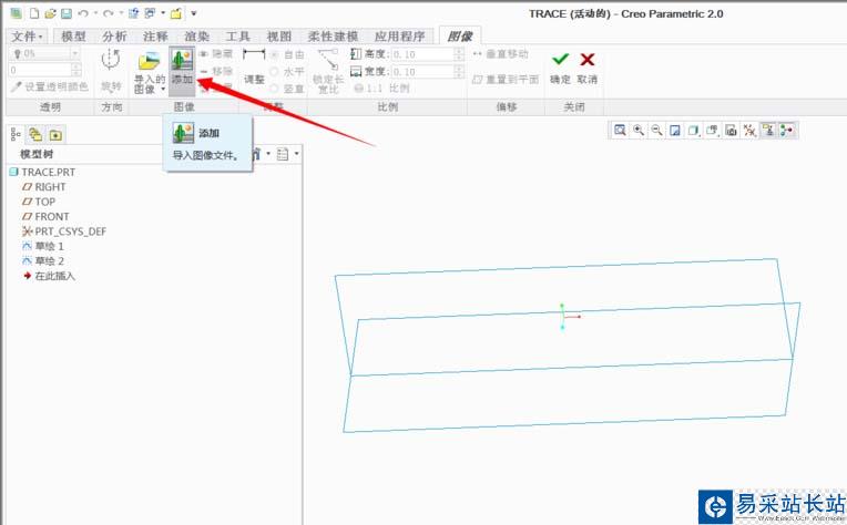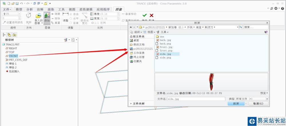 4、這時你必須要點擊將要放置輔助圖的參考面,這樣才會彈出查找外部圖片窗口。Creo支持的圖像格式很多,jpg,gif,jpg,tif等通用的圖像格式。