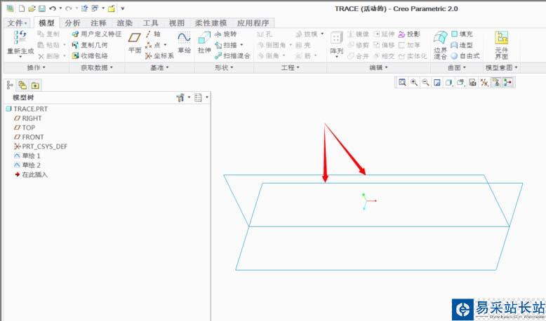 1、打開Creo2.0軟件,新建一個part圖檔,畫2個矩形線框,主要目的是參考確定輔助圖的大小;