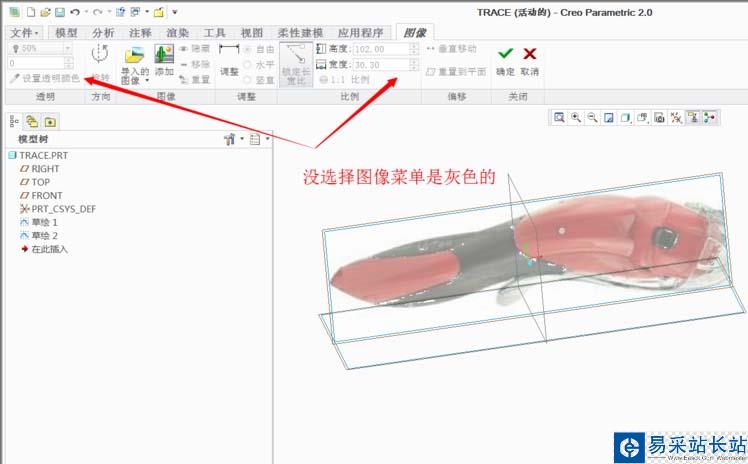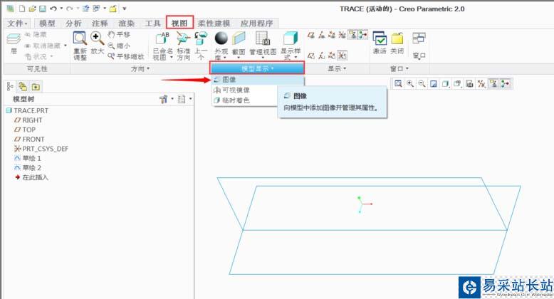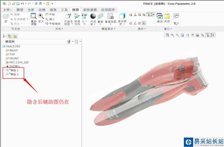 下圖是Proe的跟蹤草圖的界面,其必須在造型Style里面設置輔助圖,Creo把這功能移到了視圖里面,易用性和實用性都提高了很多。估計還有很多用戶沒有用過這功能,下面我以Creo2.0跟蹤草圖的用法來講解一下。