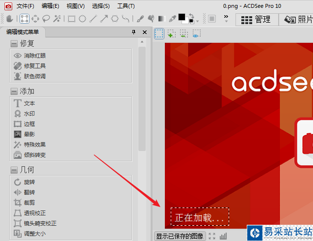 3、我們使用acdsee看圖軟件的選區工具將圖片上要打馬賽克的地方做好選區,這里將“正在加載”幾個字選中給大家演示。