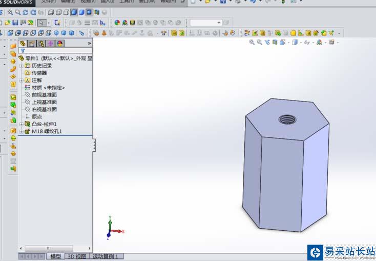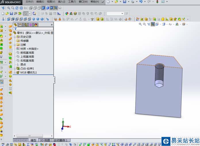 在使用SolidWorks3維軟件中,我們經(jīng)常要給零件添加螺紋孔,下面我就來給大家介紹一下怎么給零件添加螺紋孔。