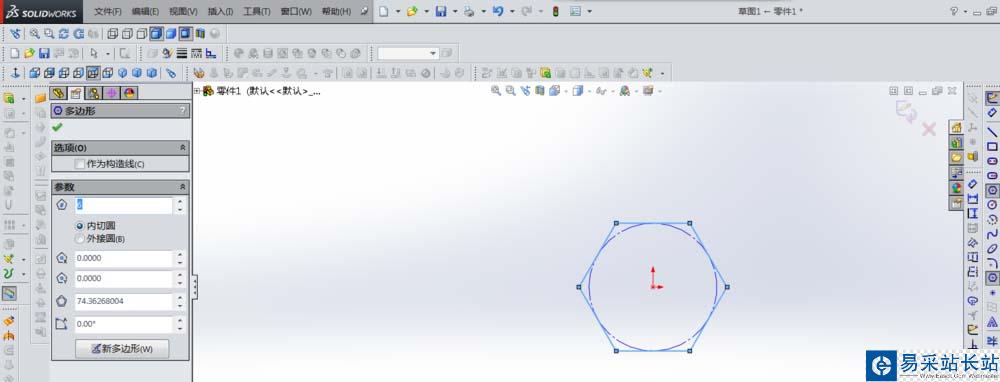 2、畫出你需要做的零件,如下圖,以六角鋼為例,先畫一根六角鋼