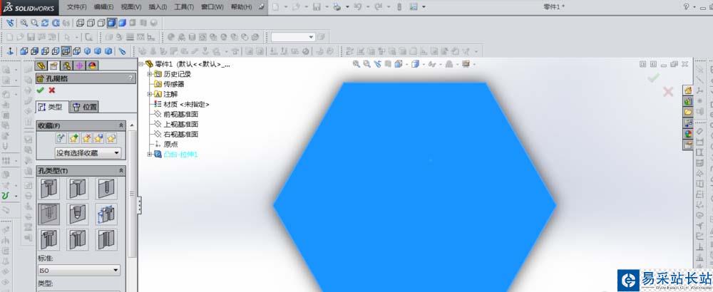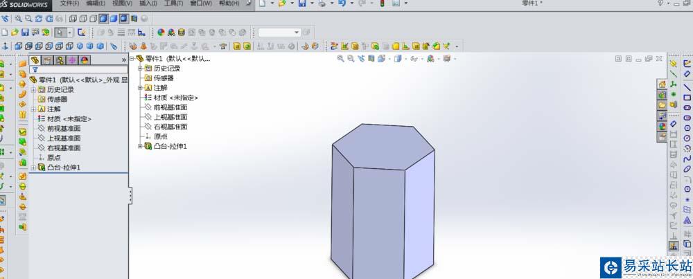 3、在六角鋼的草圖上拉伸,拉伸出實體,如下圖