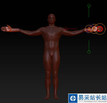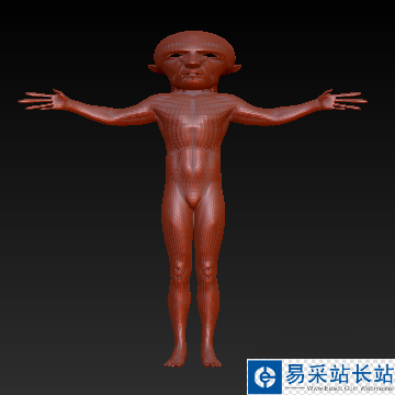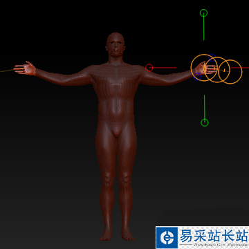 在ZBrush中使用一些特殊縮放工具特性能使模型變形,這里以實例展現特殊縮放變形效果,將人物的兩只手放大,制作出一個怪物的形態。