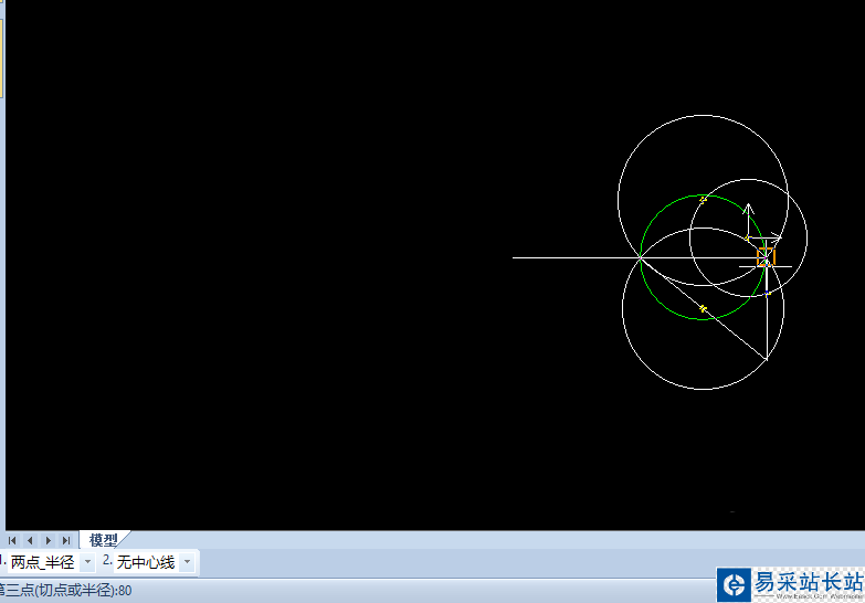 6、還有一個就是兩點加半徑,這時候要求更精確,依次點擊兩點后還需要輸入要求的半徑,才能畫出。最終如下圖,根據各種要求畫出指定圓。