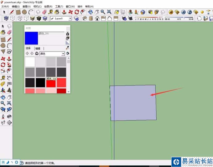 2、在SketchUp左側的繪圖工具欄中,選擇“矩形”,矩形工具可以幫助我們進行一定的特殊形狀的繪制,確定矩形工具,之后直接在畫面上繪制即可。