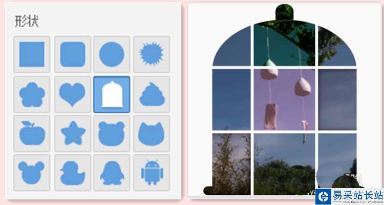 5、再選取上面的任意形狀,多幾次選擇,對(duì)于圖片的位置有不滿意的地方,可以用鼠標(biāo)再進(jìn)行任意的移動(dòng),以達(dá)到更好的顯示效果。