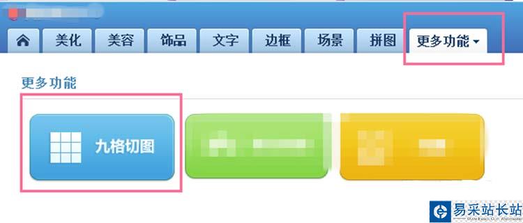 2、進(jìn)入美圖秀秀的軟件,選擇“更多功能”中的“九格切圖”。