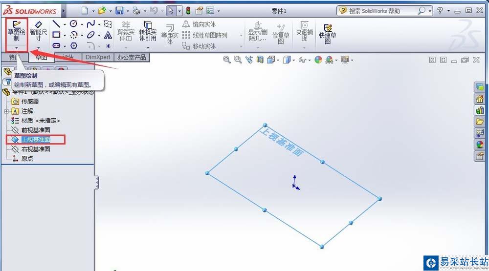 6、在上視基準面建立一條直線草圖,直線最好與之前的圓相切,長度大于矩形的長邊;