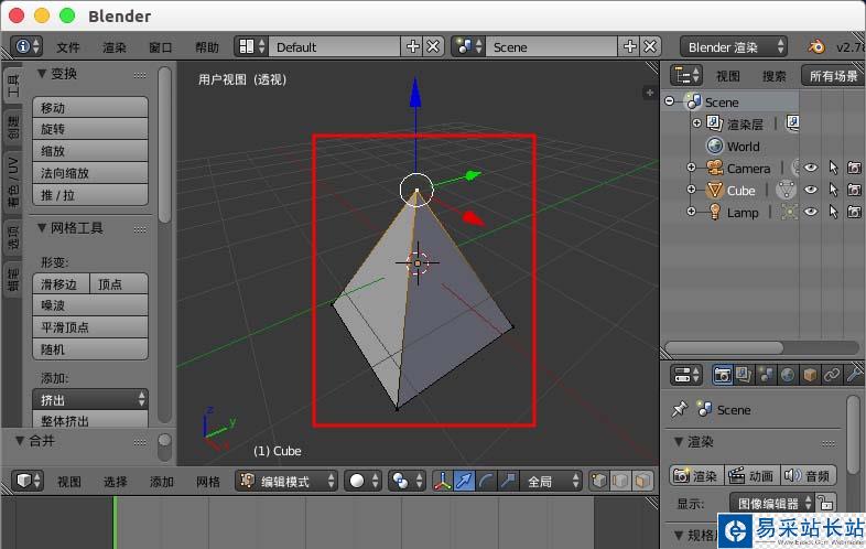 2、進入編輯模式,選擇頂部的四個點頂點。