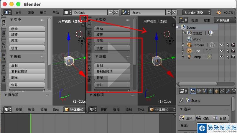 blender窗口界面的配置是很靈活的,我們可以任意刪除或者添加自己需要的功能窗口,如下圖所示,或者直接修改任意窗口的功能屬性。