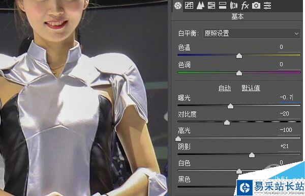 經過相機機內優化而生成的JPG格式照片,由于本身已經是一種壓縮格式,好處自然是照片容量非常小,畫質相對也好。不過從后期處理JPG的高光部分可以看出,-100高光后人物衣服沒有半點細節可以被拉回,也就是說如果JPG過曝嚴重,是沒法兒回頭的,怎么也救不回。但如果你拍攝的是RAW呢?