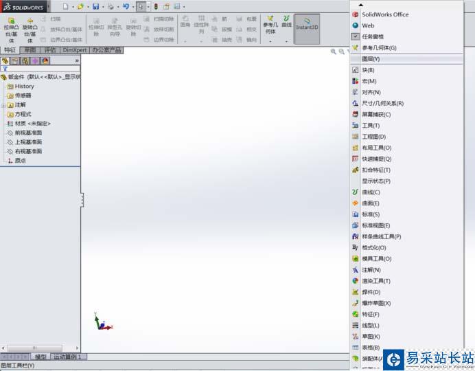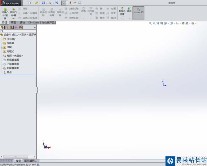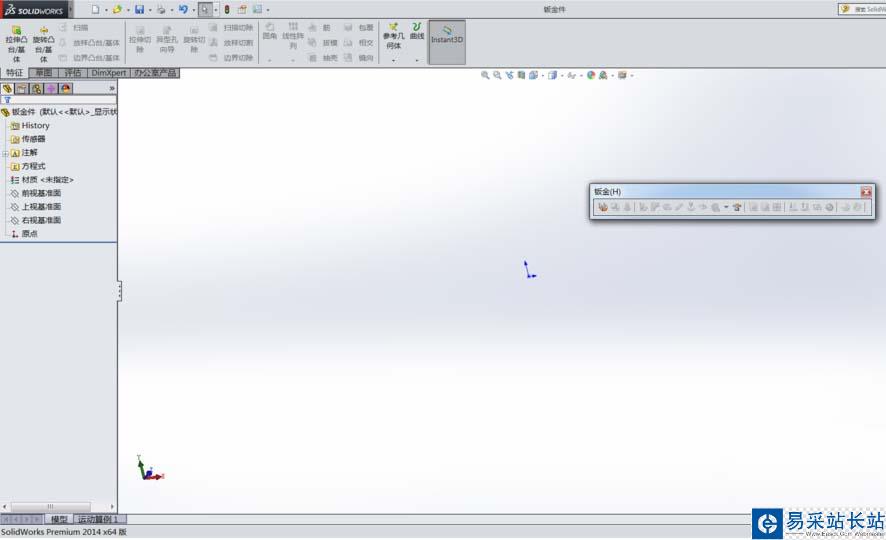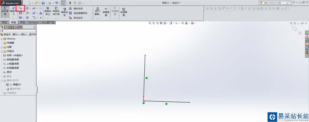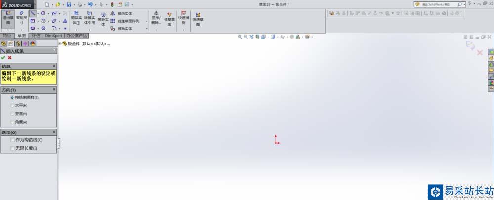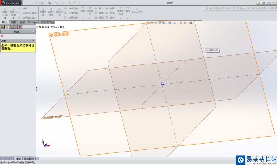 4、選擇鈑金繪制基準面:單擊鈑金--前視基準面,即進入草圖繪制界面。