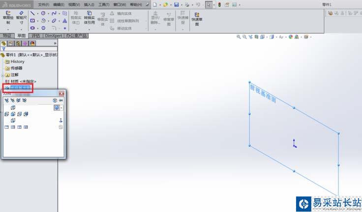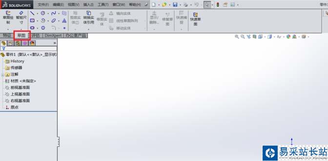 3、繪制草圖:鼠標左鍵單擊草圖--前視基準面--正視于,進入草圖界面即可繪制草圖。
