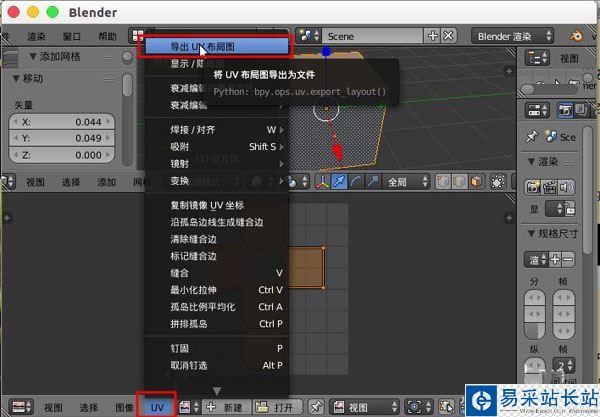 6、然后我們點選底部的菜單“UV”--“導出 UV 布局圖”。