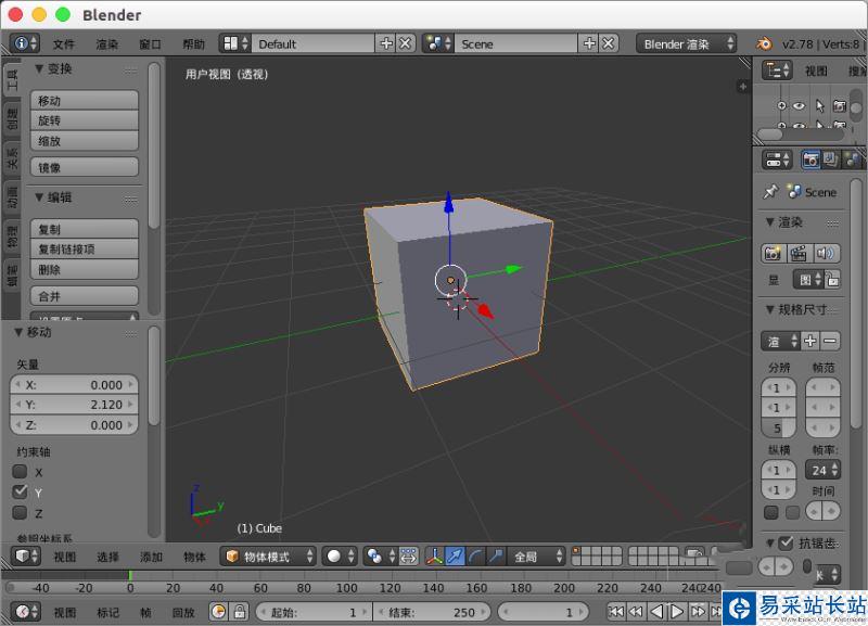 1、打開(kāi)blender默認(rèn)一個(gè)立方體。