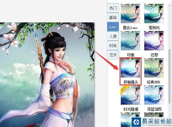 6、點擊LOMO選項,在其內找到移軸鏡頭選項,如圖所示: