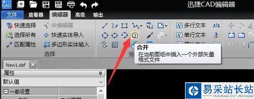3、切換到“編輯器”選項卡,點擊“繪圖”列表中的“合并”按鈕,此時將打開“合并文件”窗口。