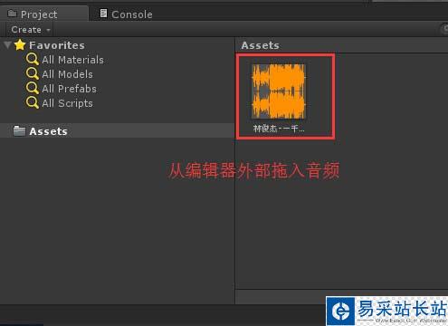3、然后直接從編輯器外部拖入要導入的音頻資源到project視圖中,如圖所示,我直接導入了一首MP3的歌曲。